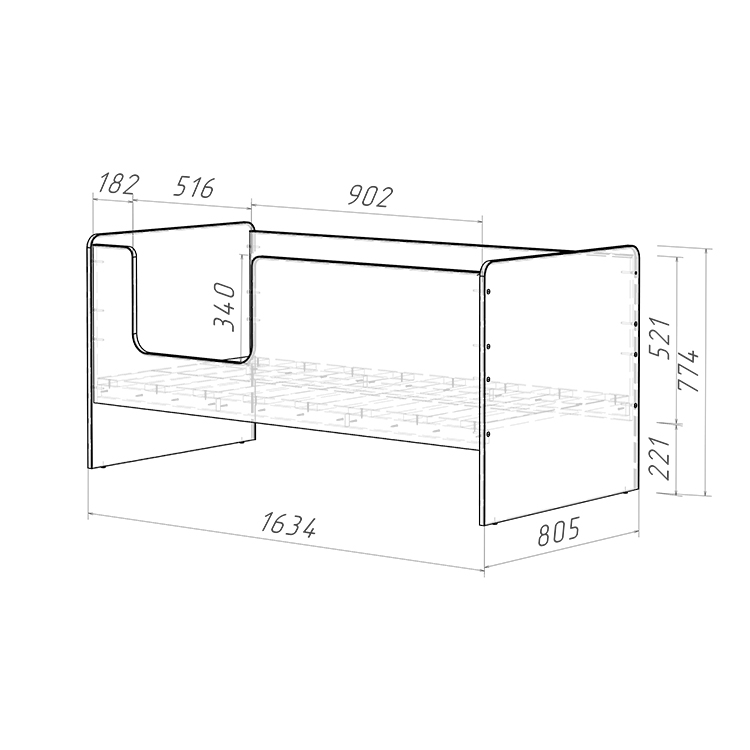 Основное внимание уделено безопасности. Высокие безопасные борта (высотой 521 мм) обеспечивают надежную защиту от падений во сне, при этом все углы кровати неострые, что исключает возможность получения травм. Дополнительно кровать обработана мягким противоударным кантом, повышающим безопасность использования.