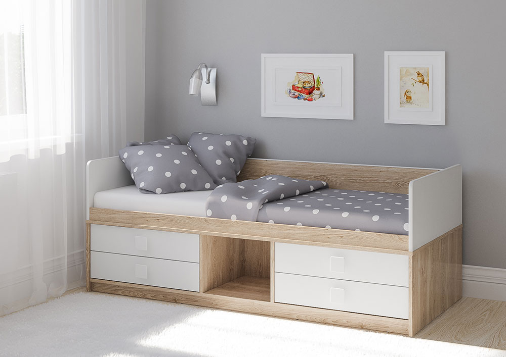 Кровать оборудована 4-мя выдвижными ящиками с телескопическими направляющими - идеально подойдут для хранения вещей Вашего ребенка.