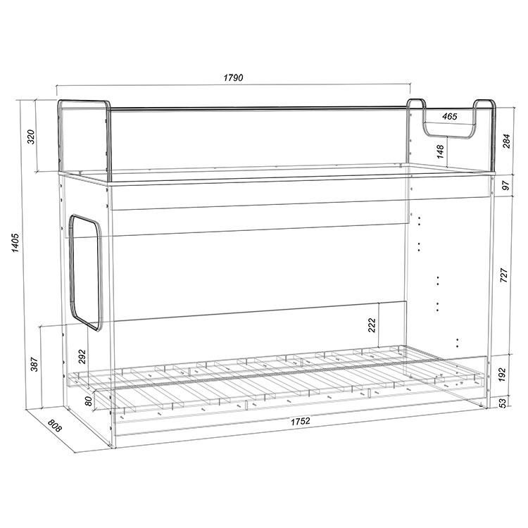 Двухъярусная кровать Легенда 43.4 с двумя параллельными спальными местами размером 1750х750.